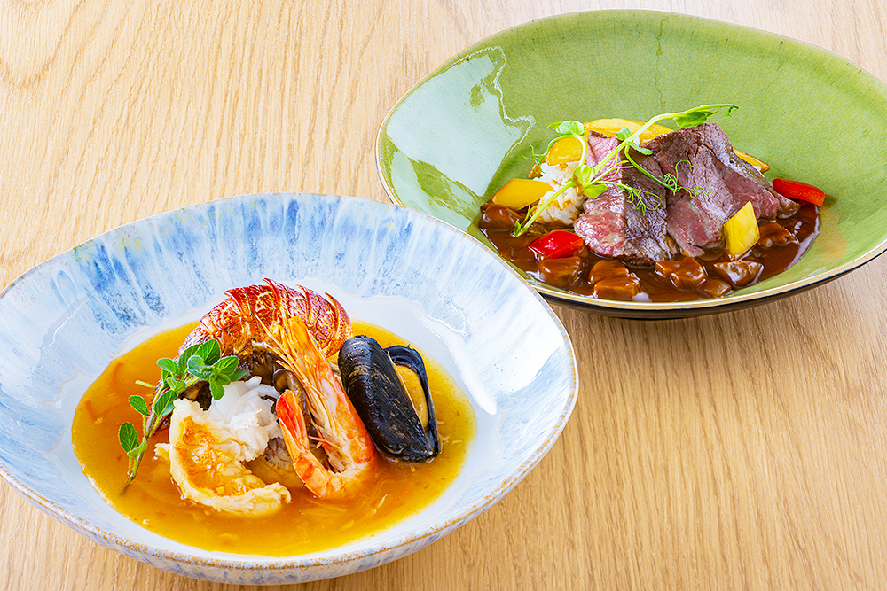 伊勢海老 瀬戸内風ブイヤベース ルイユ添え、特選牛 ビーフストロガノフ