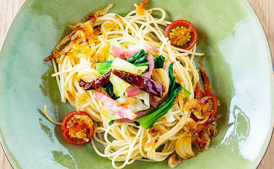 キャベツと桜海老を使った春のパスタ